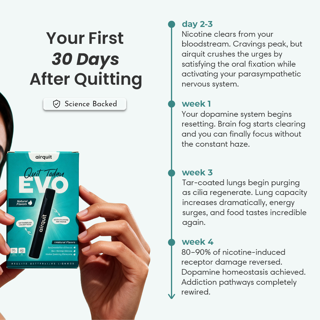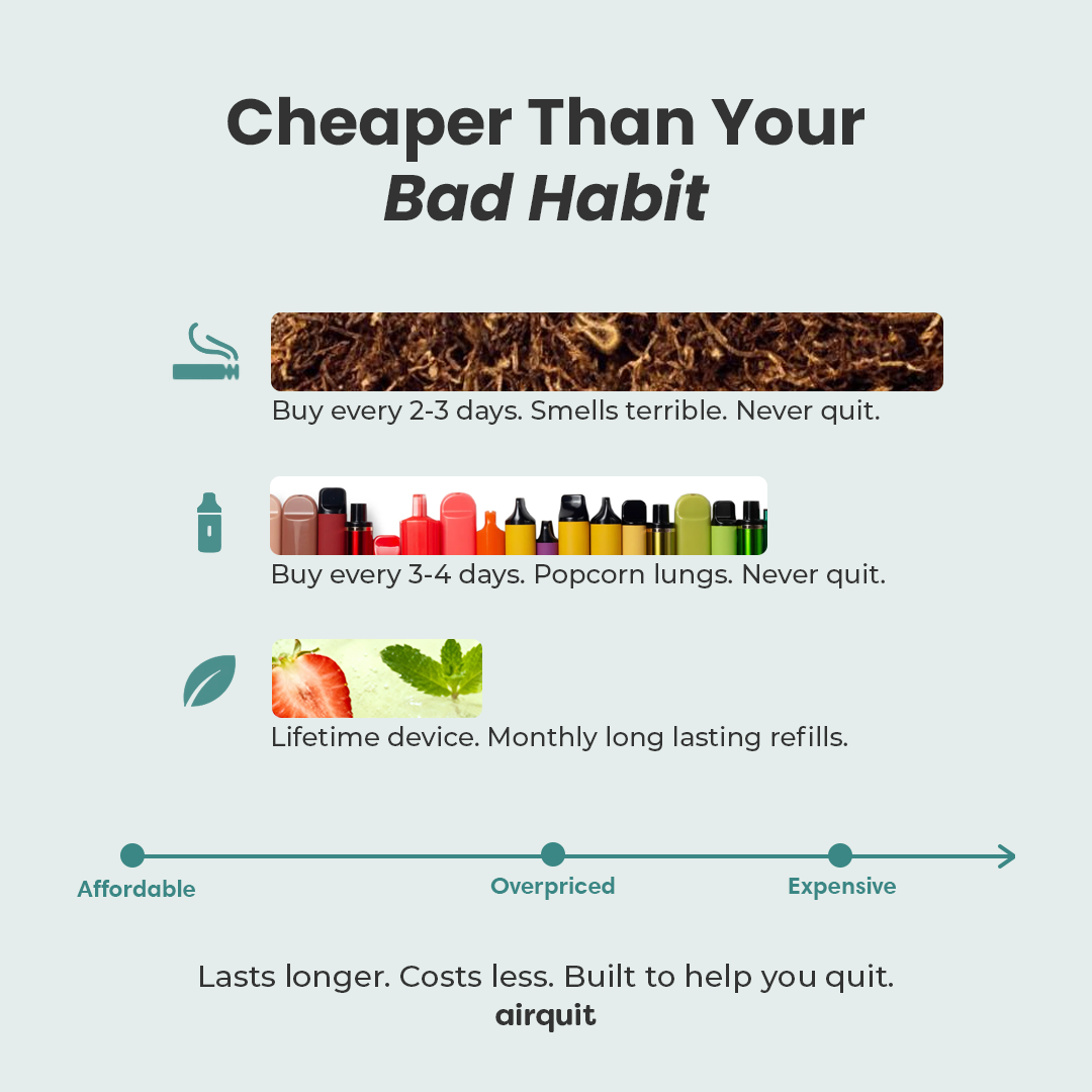 Air Quit is the last solution you'll ever need — designed to help you quit fast, with no relapse and no shame. No more hiding the habit. No more relying on chemicals or willpower alone. Just a simple, proven tool to help you finally take control.